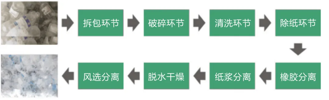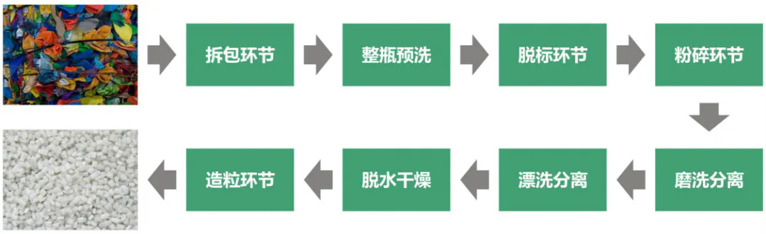 整套設(shè)備從拆包到破碎-清洗-除紙-除橡膠-干燥-分離瓶嘴料均可全自動(dòng)化流水生產(chǎn)。生產(chǎn)出來(lái)的成品顆?;具_(dá)到了新料的品質(zhì),廣泛用于注塑擠出、加工造粒等領(lǐng)域。