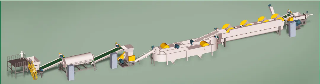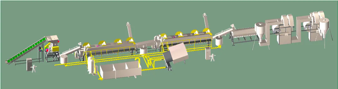 柯達(dá)機(jī)械制造各類型再生塑料全套破碎清洗分離生產(chǎn)線,與Toplun(菲律賓)、KSI(馬來(lái)西亞)、泉源塑膠(印尼)、新華泰(泰國(guó))、海鹽海利等PET再生利用大型生產(chǎn)廠家合作,大部分客戶清洗的PET切片均對(duì)接Adidas,Nike等世界知名企業(yè),柯達(dá)機(jī)械PET工藝略異于市場(chǎng)生產(chǎn)線,多出市場(chǎng)上的冷熱預(yù)洗及堿洗后增加酸性中和清洗,在整個(gè)工藝中務(wù)求減少PET切片的刮痕損傷,降低粉末損耗率,快速酸性中和保固PET成品料粘度。每個(gè)工序點(diǎn)都為生產(chǎn)出高粘度,低損耗PET成品而設(shè)計(jì)。